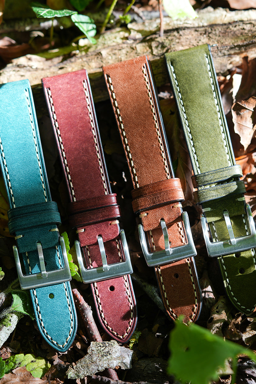 Every strap is hand-picked, hand-stitched, and softly padded, then finished with a brushed stainless steel buckle and contrast stitching. The leather is oil-treated at the tannery, ensuring softness, longevity, and a supple feel from the very first wear. Available in a seasonal palette of Red, Blue, Brown, and Green, these colours are inspired by autumn and winter tones – warm, earthy, and versatile. Choose from 18mm, 20mm, or 22mm widths to fit MoonSwatch, Rolex, Tudor, Cartier, and most other popular watch models.
