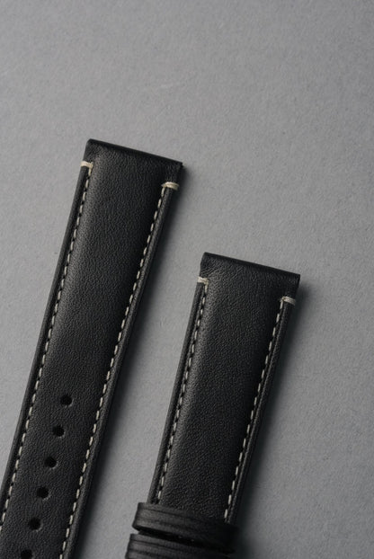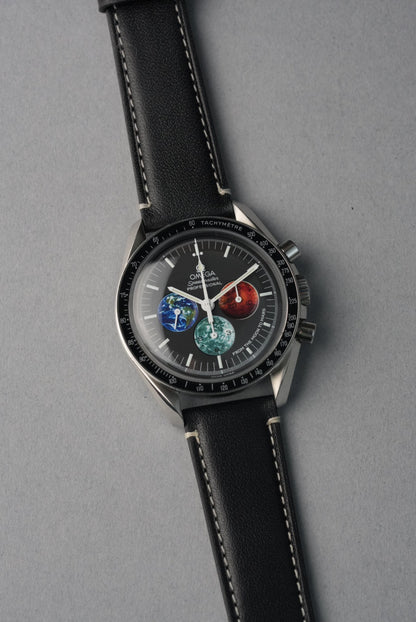The finest leather strap in our MoonSwatch collection. Handmade from Italian full-grain leather with precision contrast stitching and a soft nubuck lining for all-day comfort. Structured enough for durability, supple enough to feel broken-in from the first wear. Available in four colours to suit every Swatch x OMEGA MoonSwatch model.
