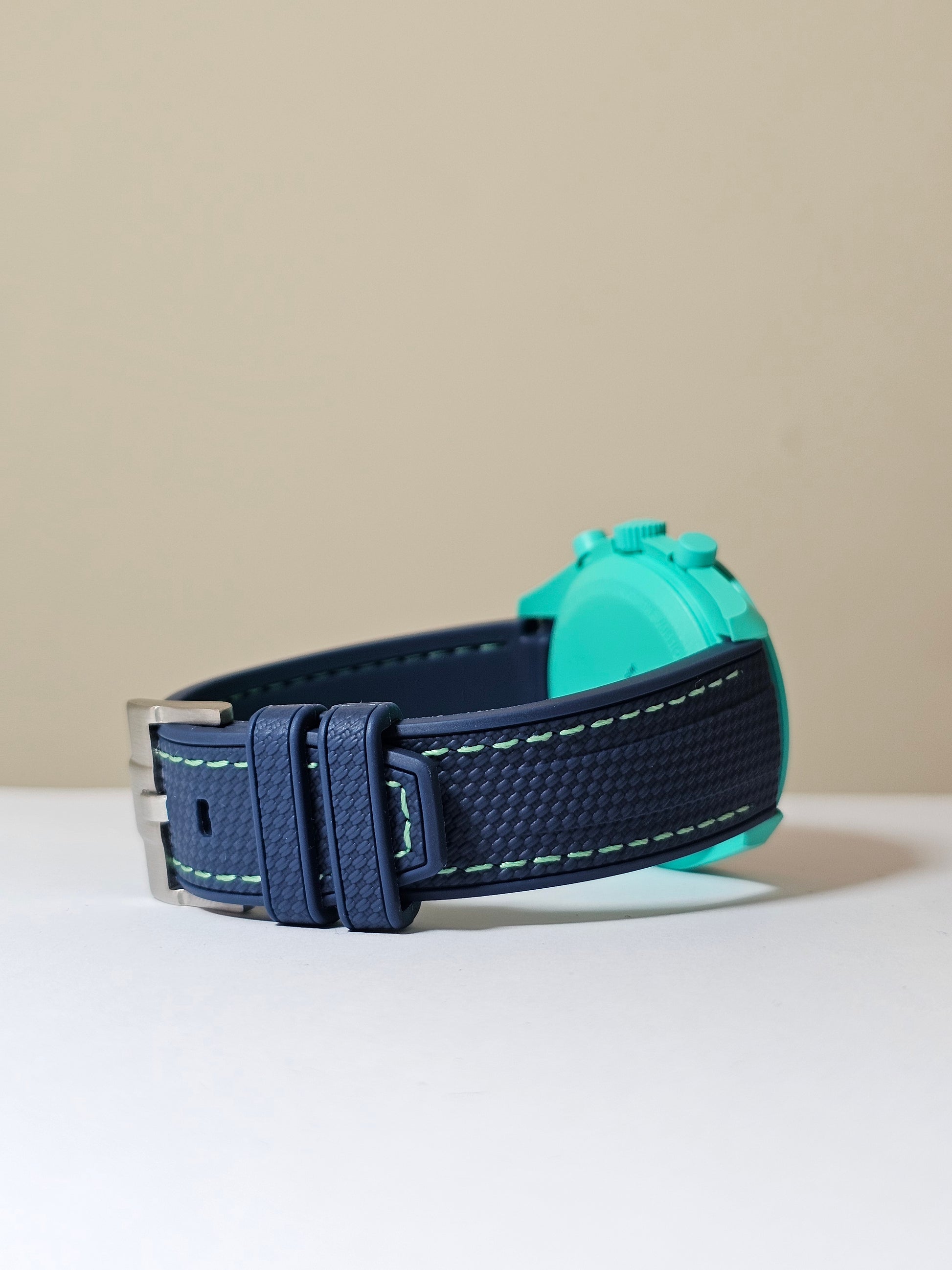 Rubber Curved Strap for Omega x Swatch MoonSwatch – Mission on Earth: Polar Lights – Navy with Green Stitch