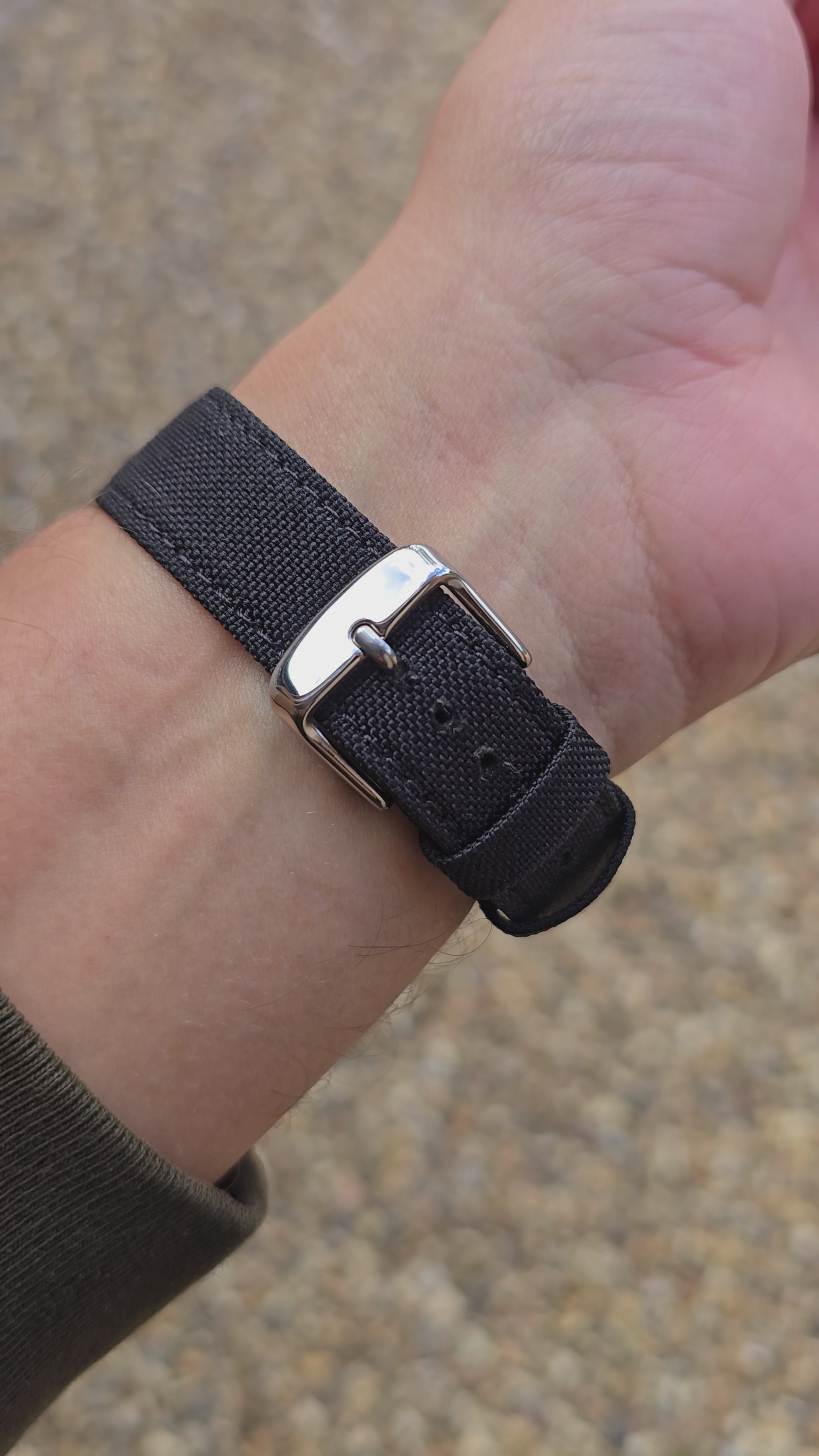 The colour-matched stitching keeps the design sharp, while brushed stainless steel hardware adds a secure and understated finish. Designed to fit all MoonSwatch models, this strap offers a more tactical, versatile option for those who prefer a fabric-style fit.