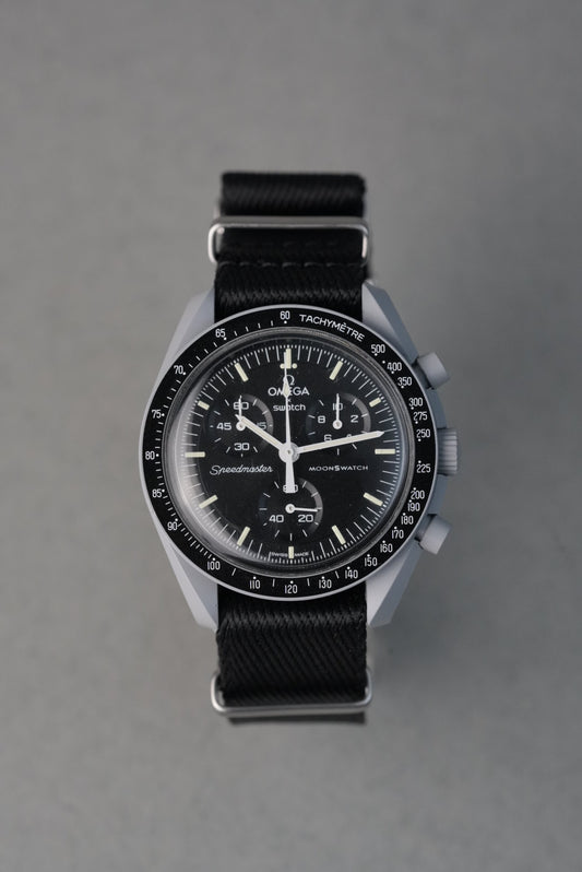 Military Fabric Strap for Omega x Swatch MoonSwatch – Mission to the Moon – Black & Grey