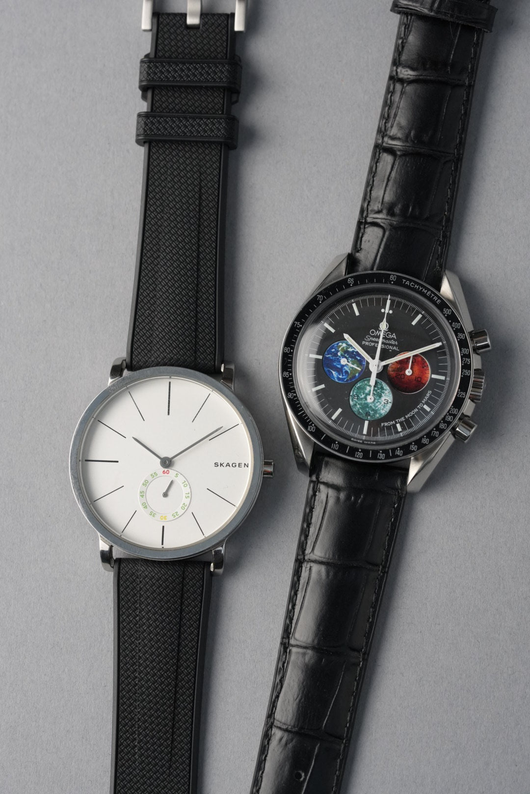Upgrade any watch collection with the Essential Strap Bundle – a ready made set combining a premium military grade rubber strap, a classic leather strap, and a spring bar tool. Designed with a universal fit in mind, this bundle is perfect for the likes of the Swatch x Omega MoonSwatch, Rolex, Tudor, Cartier, Seiko & many other popular watches.