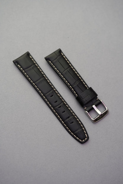 Enhanced by the texture of the alligator grain, this strap offers a delightful detail that is further accentuated by the polished stainless steel buckle.