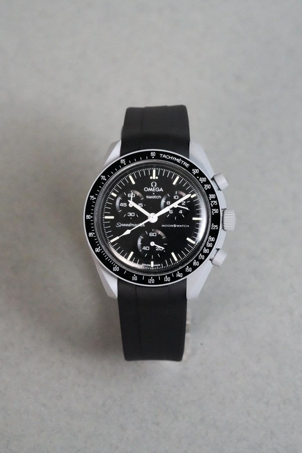 Rubber FKM Curved Strap for Omega x Swatch MoonSwatch – Mission to the Moon – Black