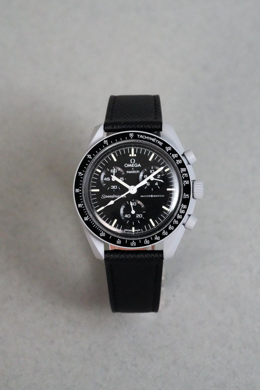 Saffiano Leather Strap for Omega x Swatch MoonSwatch – Mission to the Moon – Black