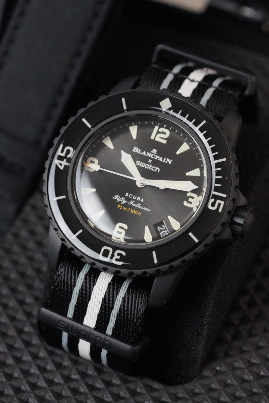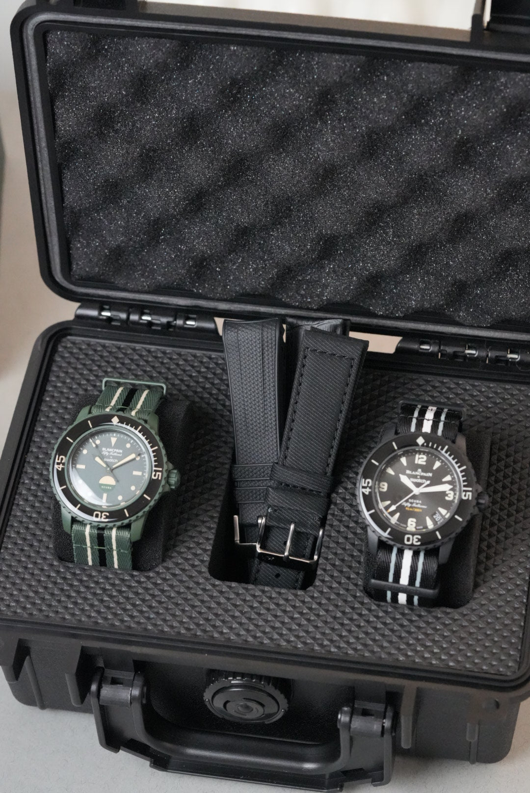 For collectors who want more than just the watch – this exclusive bundle brings together two standout models from the Blancpain x Swatch Fifty Fathoms Scuba Collection, designed to take you from deep-sea inspiration to everyday style with ease.
