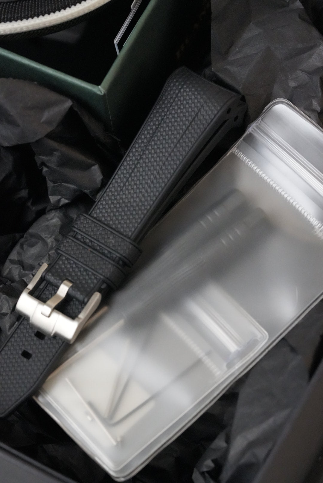Designed to match perfectly, our premium rubber woven strap gives your Green Abyss a whole new feel; rugged, comfortable, and effortlessly sleek. Easy to wear, secure in water, and built for daily rotation. -