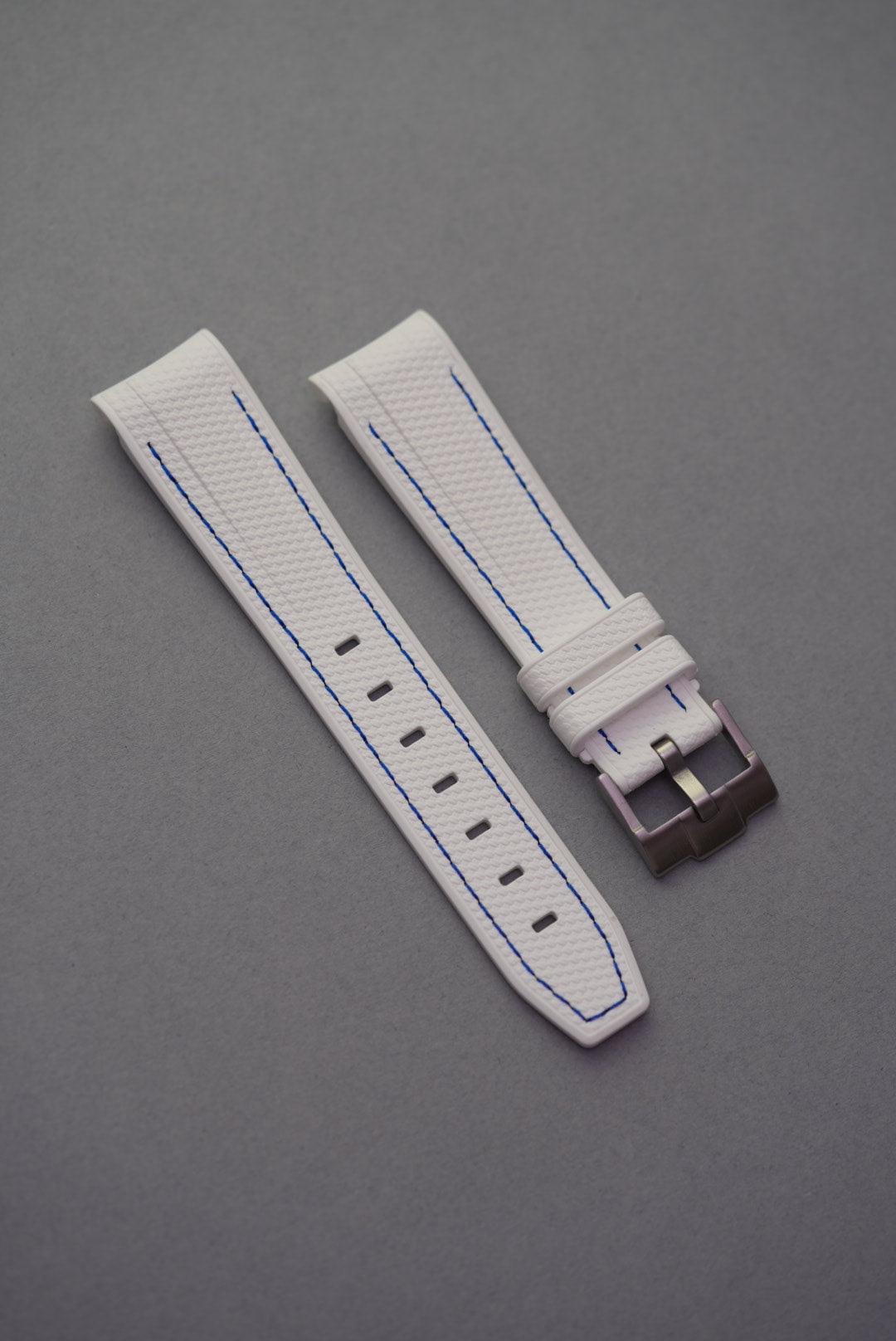 Rubber Curved Strap for Omega x Swatch MoonSwatch – Super Blue MoonPhase – White with Blue Stitch