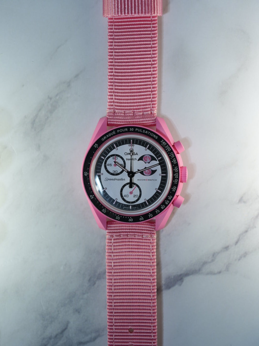 Military Fabric Strap for Omega x Swatch MoonSwatch – Pink MoonPhase – Pink
