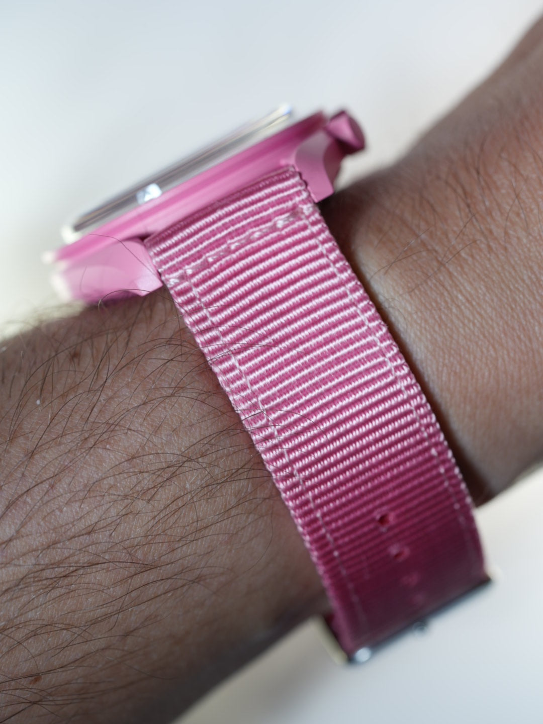 A bold choice for the boldest MoonSwatch yet. Our Pink Nylon Quick Release Strap is made to complement the Swatch x OMEGA Mission to the Moonphase – Pink, offering a fun and vibrant pairing that doesn’t compromise on performance.
