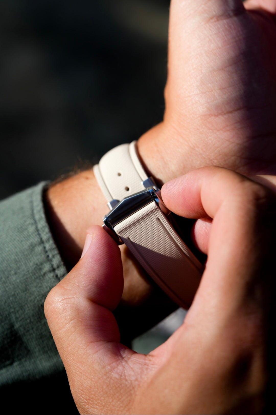 Sailcloth Effect FKM Rubber Strap with Deployant Clasp - For OMEGA Speedmaster - Cream