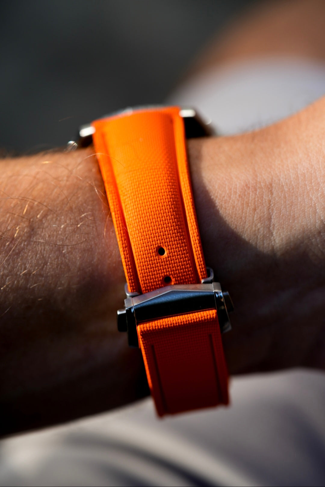 Sailcloth Effect FKM Rubber Strap with Deployant Clasp - For Rolex Submariner - Orange