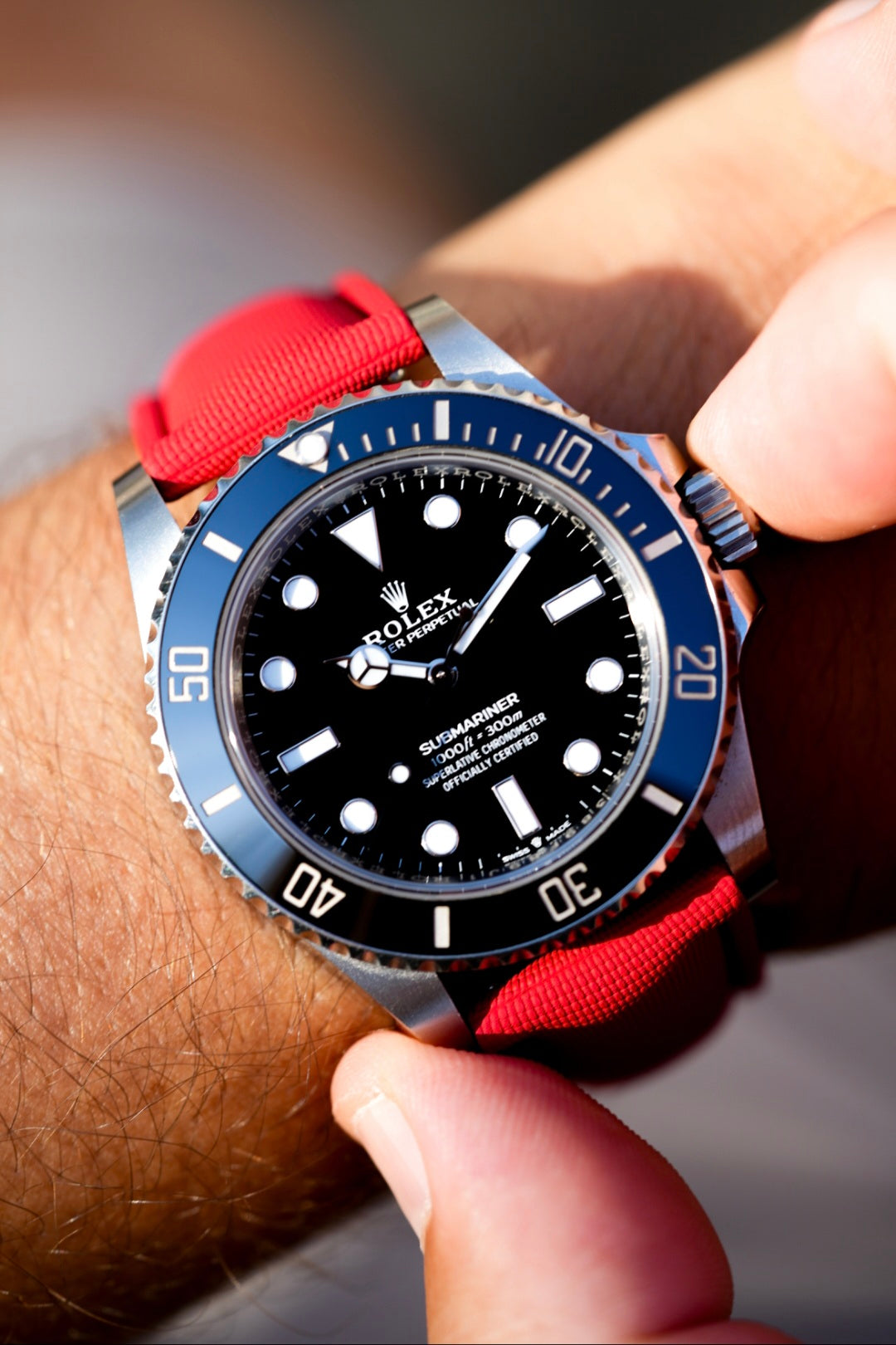 Sailcloth Effect FKM Rubber Strap with Deployant Clasp - For Rolex Submariner - Red