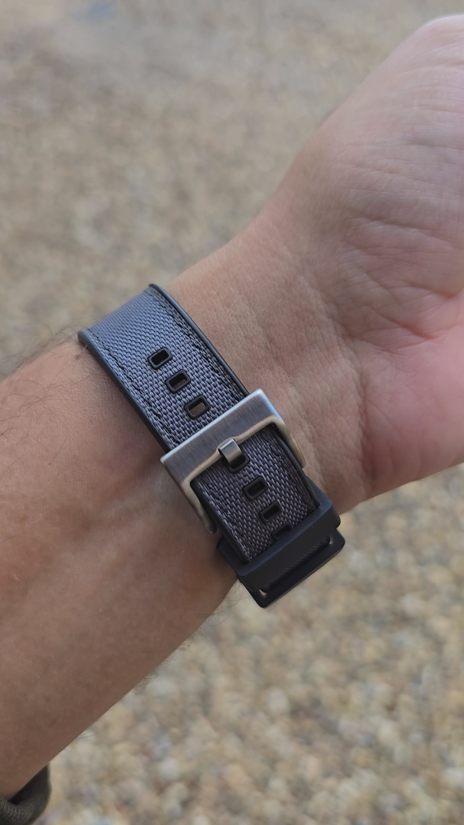 Crafted for those who demand both style and performance, this FKM rubber and sailcloth hybrid strap is the ultimate upgrade for your Omega Seamaster 300M. Combining high density, soft-to-the-touch FKM rubber with a premium canvas surface, this strap delivers unmatched comfort with a unique, sophisticated appearance.