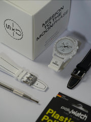 Enhance your MoonSwatch collection with the Swatch x OMEGA MoonSwatch Mission to the MoonPhase ‘Full Moon Snoopy’ Bundle, the ultimate set for collectors and enthusiasts. Centred around the luminous Full Moon Snoopy edition (SO33W700), this exclusive package includes everything needed to personalise, protect, and maintain your timepiece — the best MoonSwatch bundle for collectors because it combines heritage, style, and practicality in one refined set.